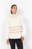 Sie hat einen hohen Rippkragen, ein strukturiertes Strickmuster mit Streifen und kurze Ärmel. Trage sie über einem langärmeligen Oberteil oder unter einer Jacke für zusätzliche Wärme und Stil.