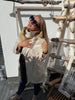 SC - Senella 1 ist ein ca 19 cm breiter Schal, man kann ich sehr schön auch einfach um den Hals legen und am Mantelsaum hängen lassen.